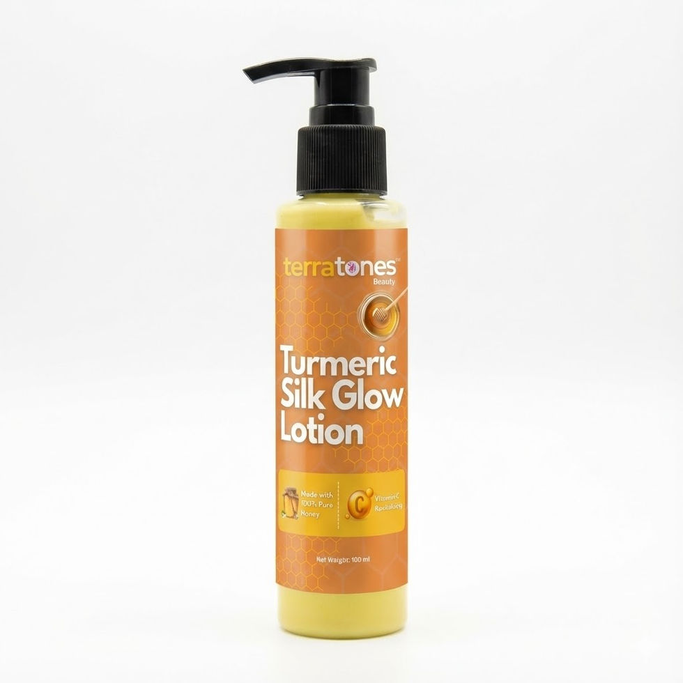 TerraTones Turmeric Silk Glow Body Lotion is crafted with a blend of turmeric, honey, orange extract, sandalwood and vitamin C to deeply hydrate, brighten and soothe the skin. This lightweight lotion melts in effortlessly, leaving your skin silky soft, even-toned and naturally glowing all day.